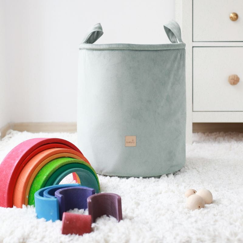 Das für den Spielzeugkorb verwendete Samtmaterial ist leicht zu reinigen, was besonders wichtig für Kinderprodukte ist.