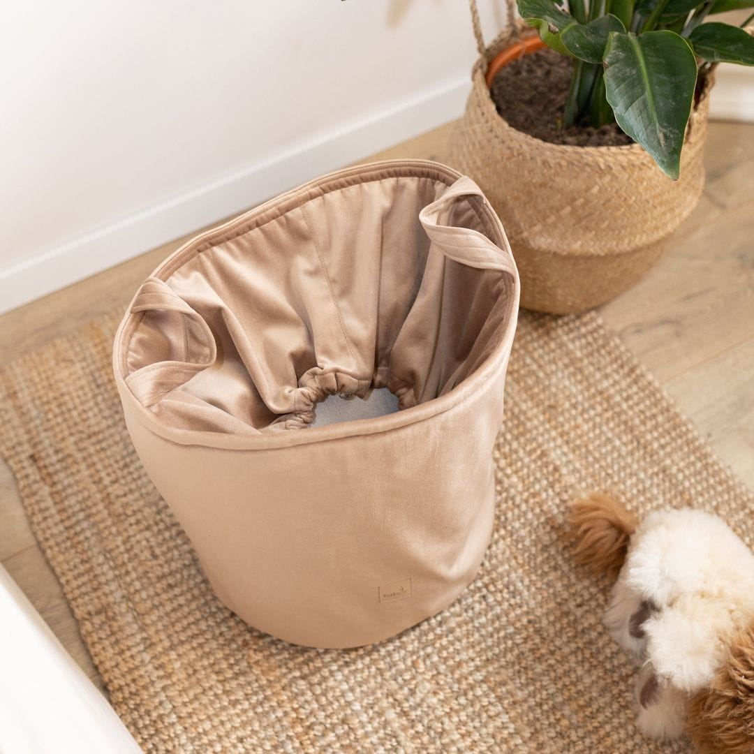 Der Aufbewahrungskorb ist aus angenehmem Samtmaterial gefertigt und mit Schaumstoff verstärkt.