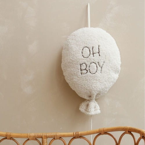 Ein bezaubernder Dekoballon ist eine perfekte Ergänzung für ein Kinderzimmer. Aus weichem Schaffell gefertigt, wird es sowohl Kleinkinder als auch Eltern begeistern. Dank eines speziellen Hakens können Sie das Ballonkissen an der Wand befestigen. Die 'Oh Boy'-Stickerei verleiht dem Kissen Charme und der hängende Schwanz verleiht dem Kissen Leichtigkeit und kindliche Unbeschwertheit, die sicherlich jedem Kleinkind gefallen wird. Es ist nicht nur ein Kissen, es ist ein magisches Element, das das Kinderzimmer in einen magischen Ort verwandelt. Der Dekoballon eignet sich auch hervorragend als Geschenk!