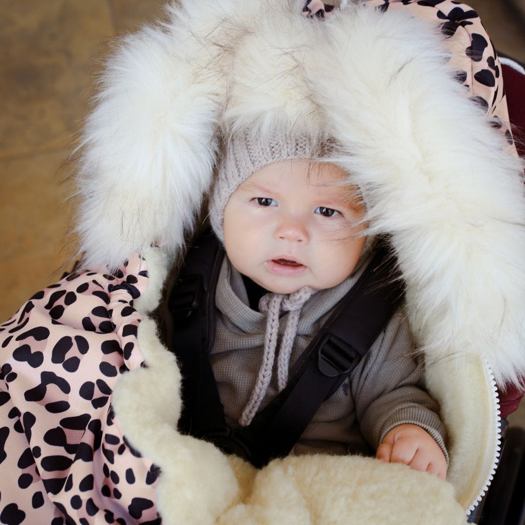 Wollschlafsack für Kinderwagen mit Kunstfell – sicher und warm auch im Winter!