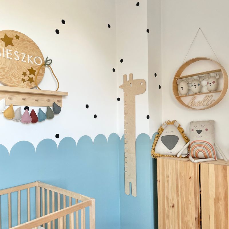 Ein hölzerner Höhenmesser in Form einer bezaubernden Giraffe passt perfekt in jedes Interieur. Auf seiner Oberfläche können wir die Entwicklungsstadien des Kindes frei markieren, so dass wir nach vielen Jahren zu diesen Erinnerungen und wunderbaren Momenten aus der Kindheit zurückkehren können.