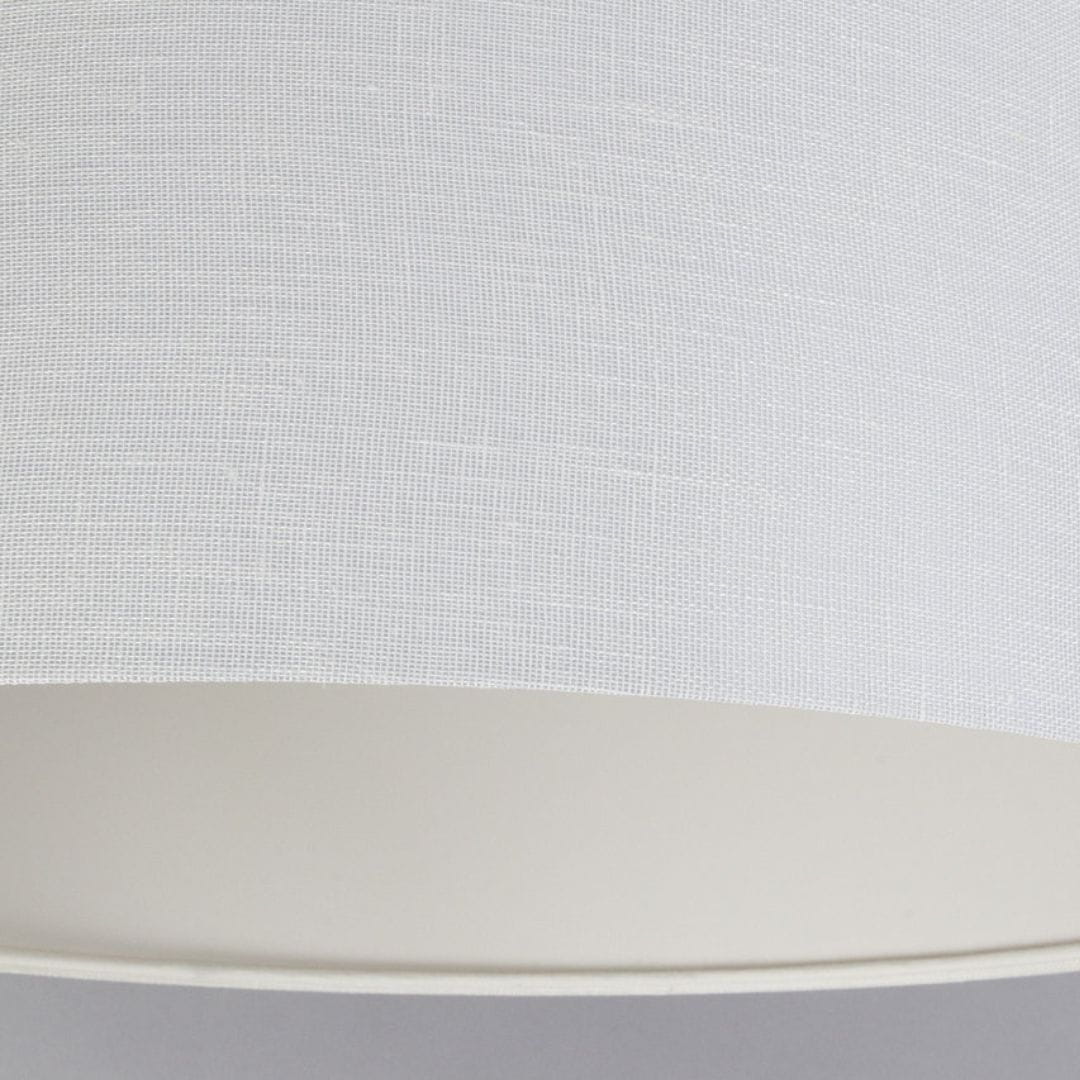 Der Lampenschirm besteht aus Leinenstoff auf einem PVC-Material. Der Lampenschirm ist UV-beständig, sodass der Stoff während der Nutzung nicht ausbleicht.
