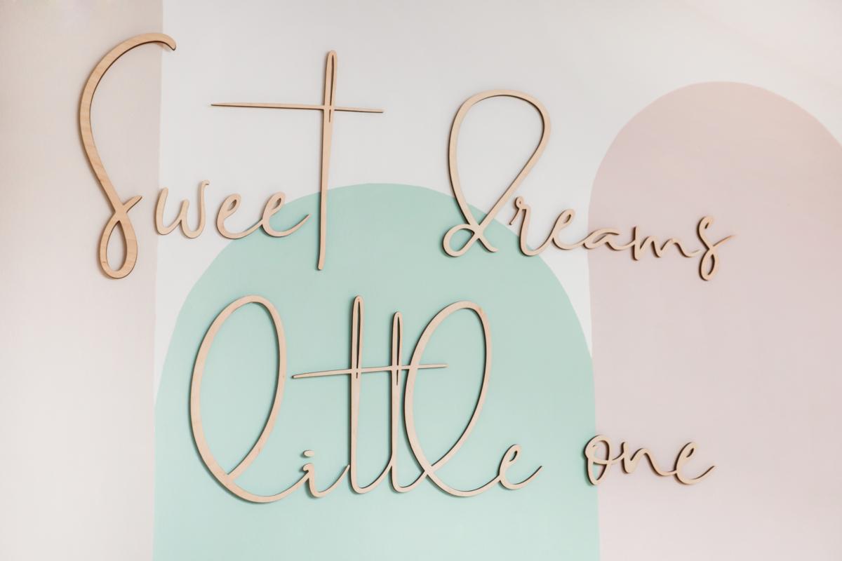 Der Schriftzug „Sweet Dreams” ist die ideale Wanddekoration für das Babyzimmer. Er sieht besonders schön aus, zum Beispiel neben einem Bücherregal, über einer Kommode oder dem Bett.