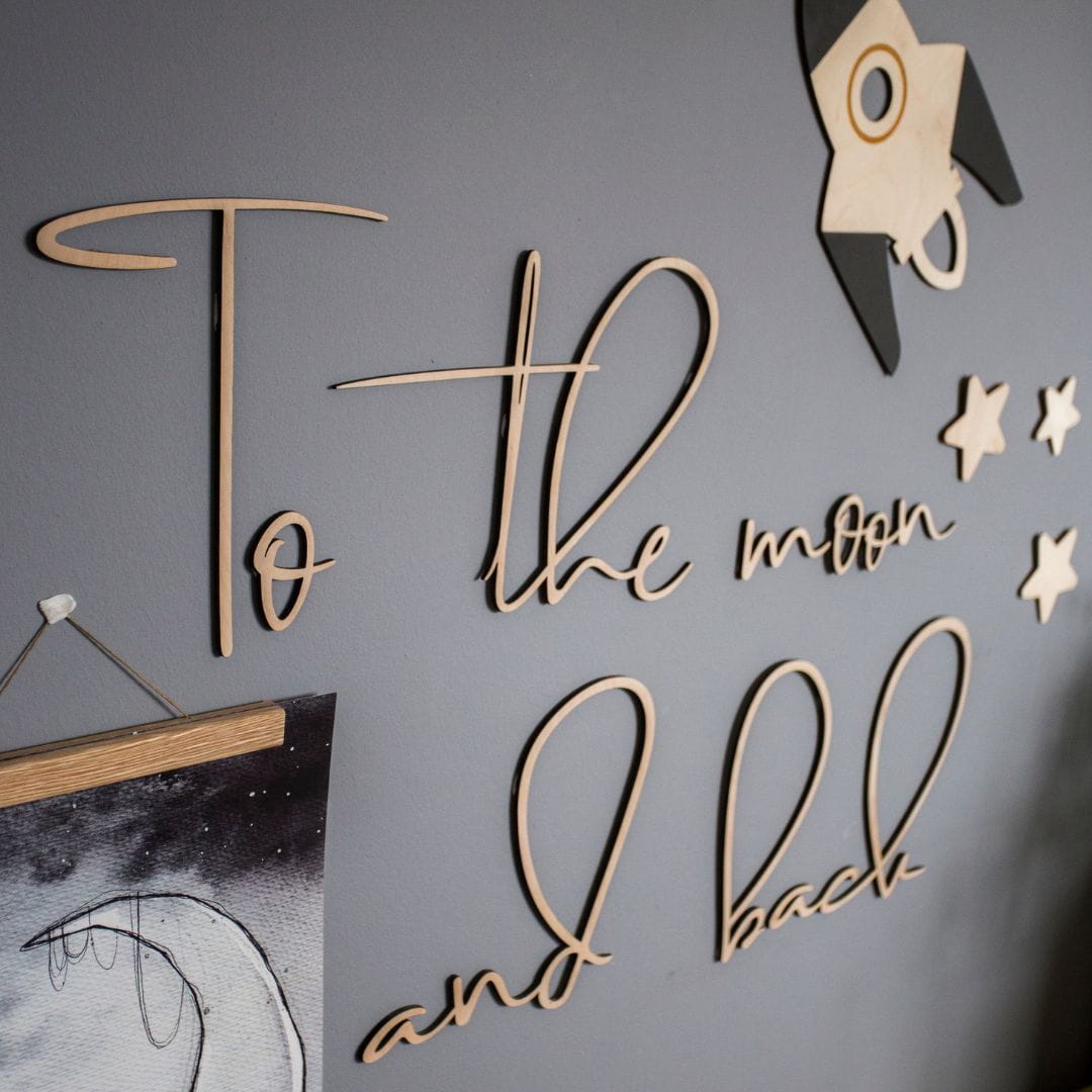 Holzdeko für das Zimmer eines kleinen Weltraumfans – „To The Moon And Back”