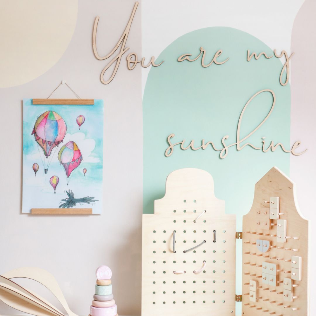 Der Schriftzug „You Are My Sunshine” ist eine wunderschöne Wanddekoration, die jedem Raum Wärme und Freude verleiht. Perfekt für Kinderzimmer, Wohnräume oder als liebevolles Geschenk für besondere Anlässe.