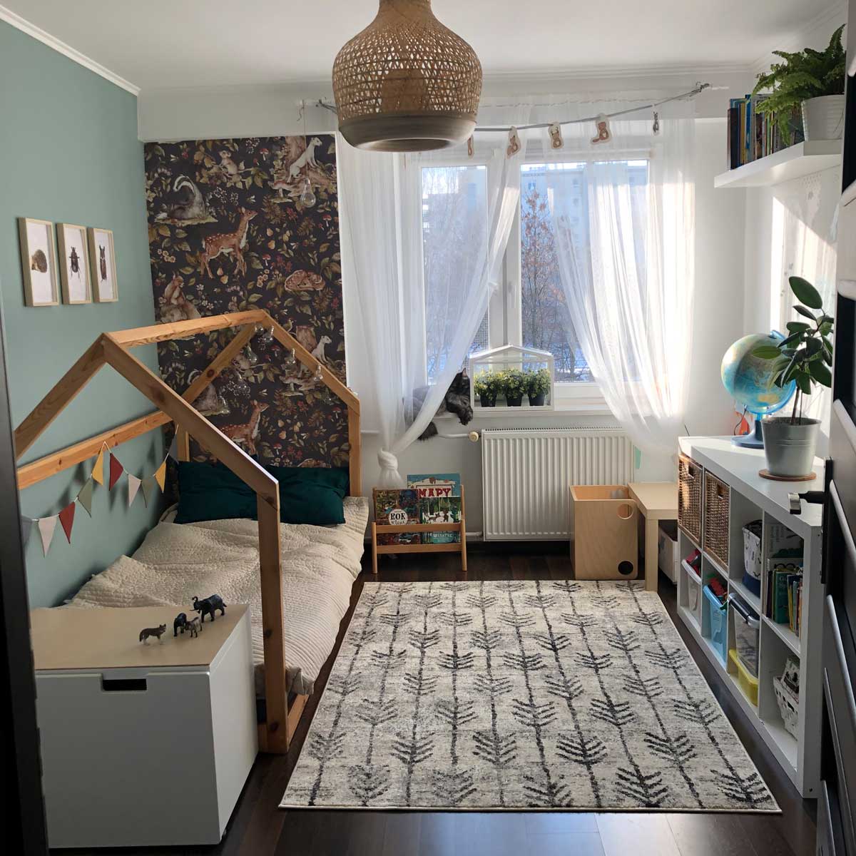 Tapete für das Kinderzimmer ist in Bahnen (Bryten) unterteilt.