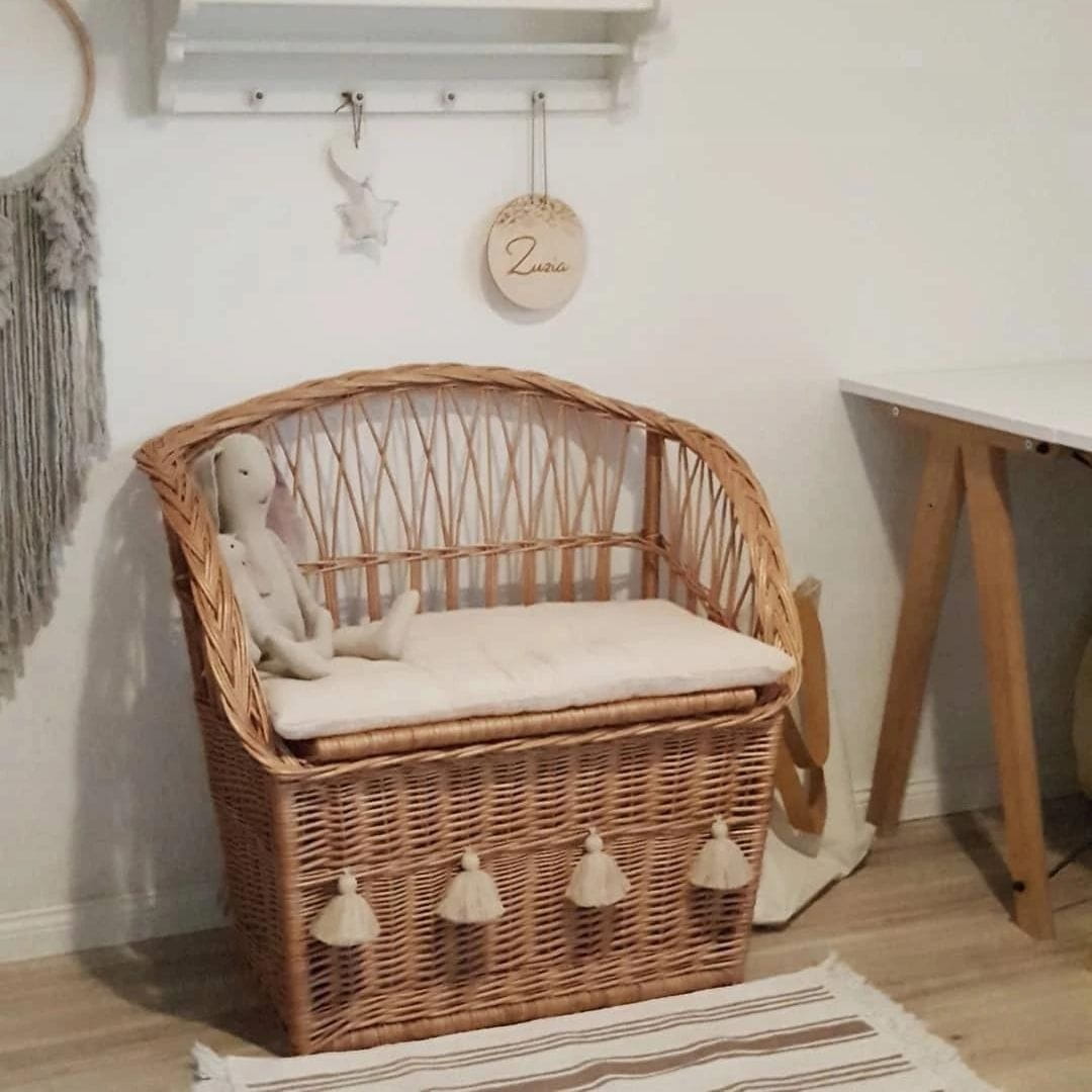 Bank aus Weide mit Aufbewahrung für das Kinderzimmer – Natur im Innenraum