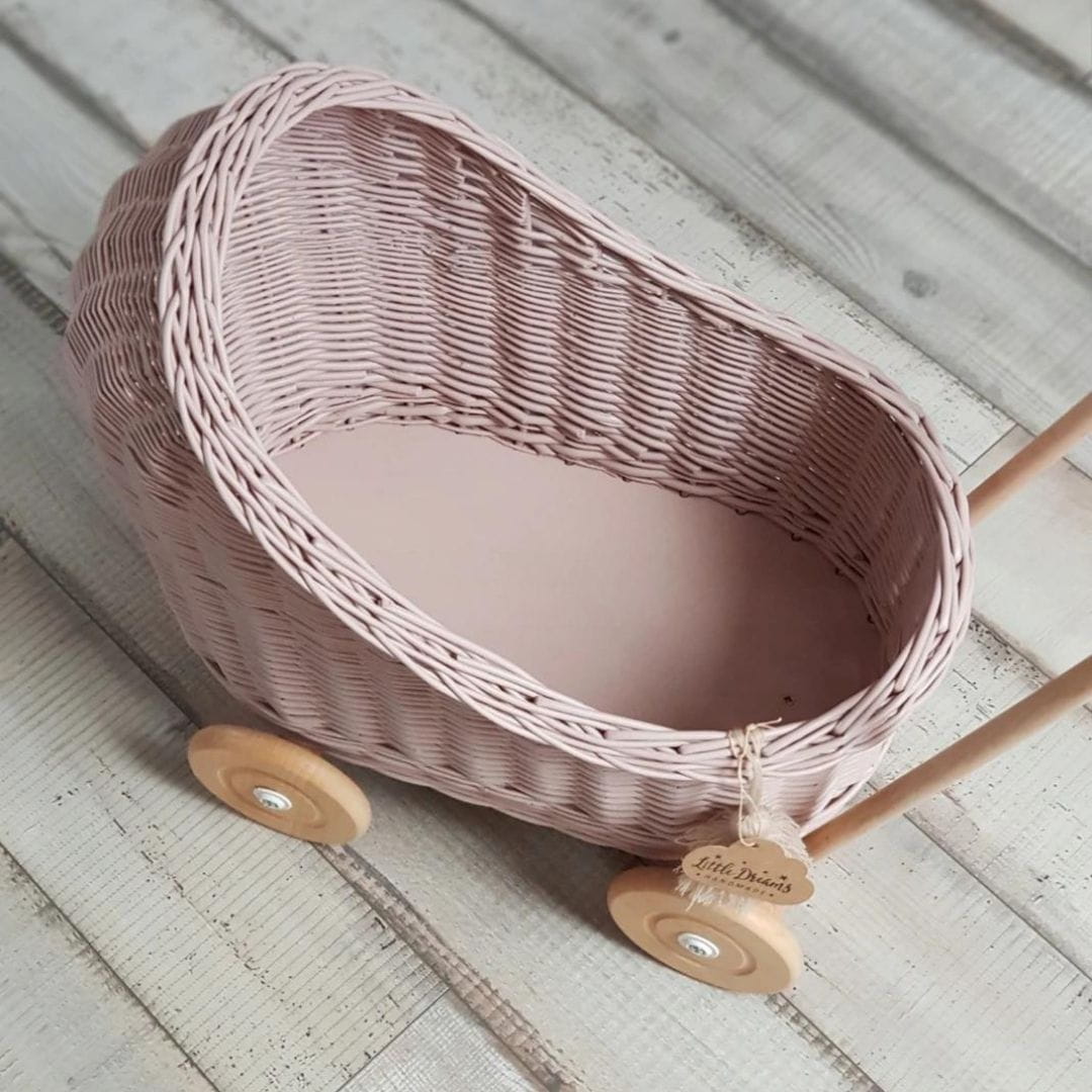 Ein bezaubernder Puppenwagen aus Korbgeflecht der polnischen Marke Little Dreams. Hergestellt aus polnischem, sehr haltbarem Korbgeflecht. Holzräder und ein Griff garantieren die Stabilität des Kinderwagens. Ein solcher Kinderwagen macht jeder kleinen Dame großen Spaß und ist gleichzeitig ein 100 % stilvolles, ökologisches und polnisches Spielzeug. Es wird ein perfektes Geschenk für ein Kind sein.