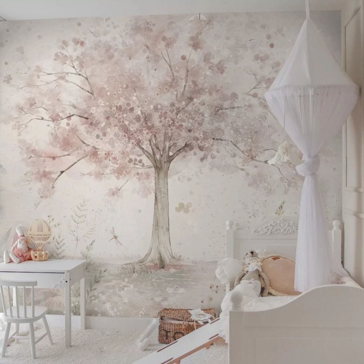 Malumi-Tapete mit Kirschbaum und Blumen – schaffen Sie das Traumzimmer eines Mädchens