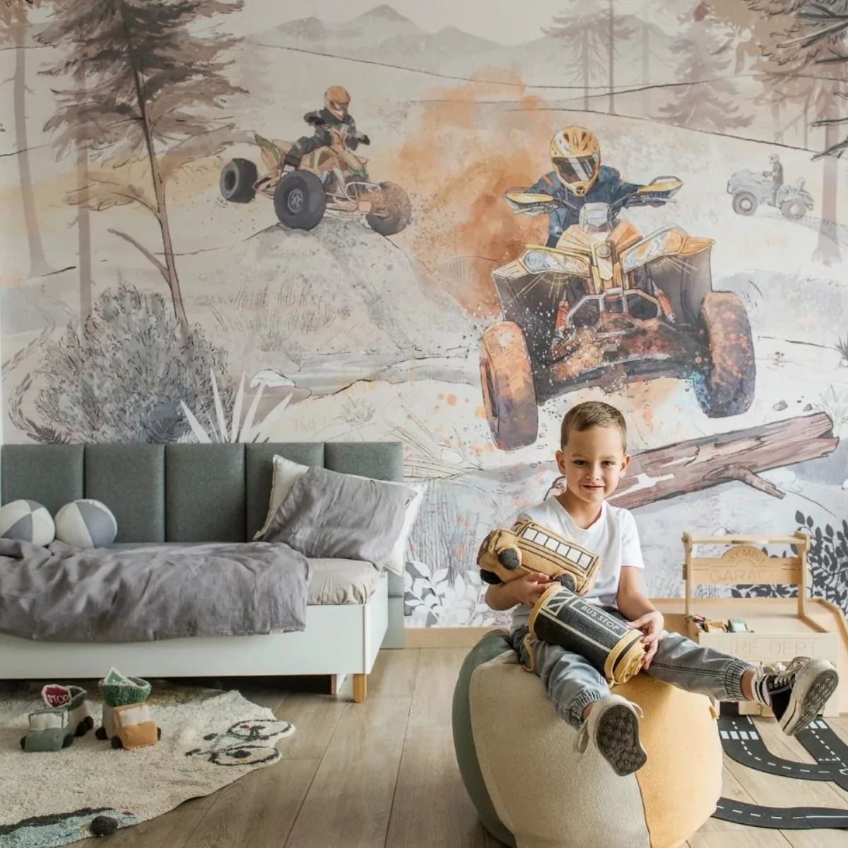 Die Quad Road-Tapete für einen Jungen ist ein langlebiges und langlebiges Produkt, das Kinder und Eltern ansprechen wird. Dank zertifizierter Materialien und Pigmente ist es sicher für die Familie. Tapeten mit Quadern werden den Raum für ein paar schöne Jahre attraktiver machen und Trost wird daraus nicht so schnell erwachsen. Das ist ein Wallpaper für echte harte Jungs;)