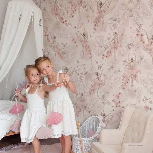 Die Ballerinas-Tapete ist eine Übertragung mädchenhafter Träume auf ein mit Wasserfarben gemaltes Bild. Die typisch mädchenhaften Farben und die Wiedergabe von Details werden nicht nur Töchter, sondern auch ihre Eltern begeistern.