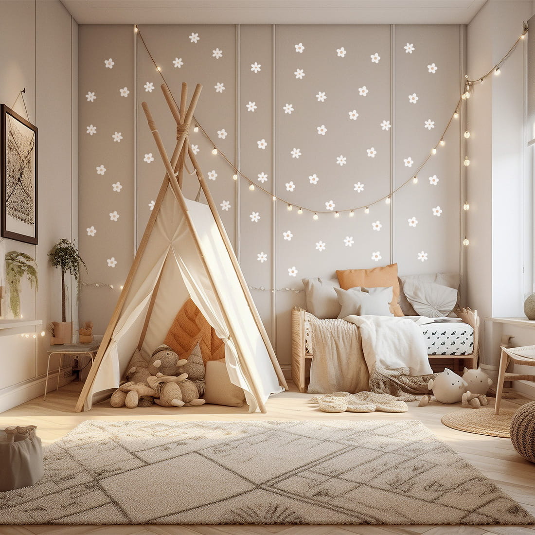 Gänseblümchen-Aufkleber für ein Mädchenzimmer – Kinderzimmer im Boho-Stil