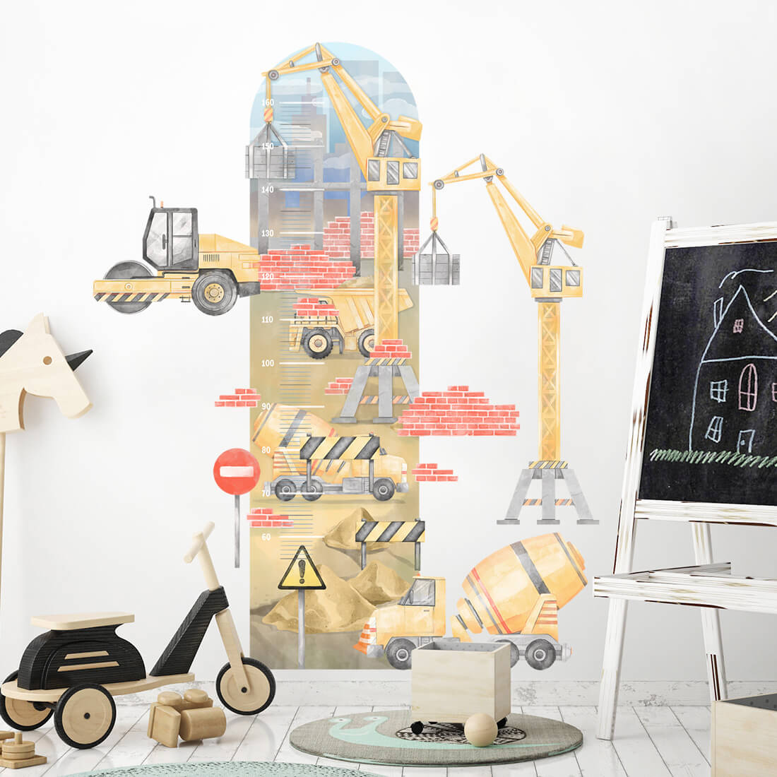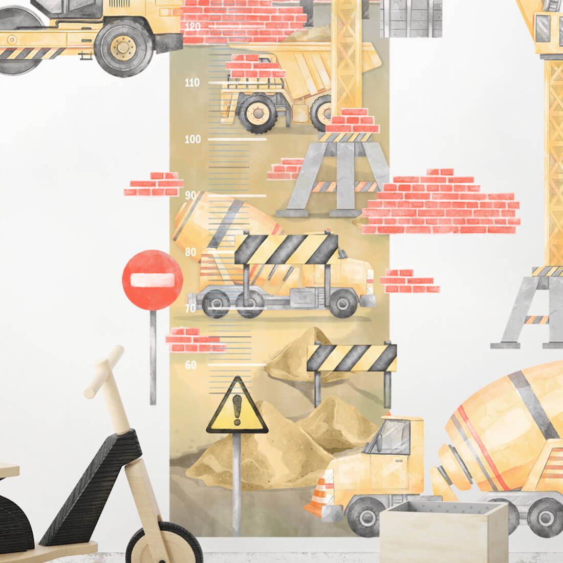 PASTELOWE LOVE - WANDAUFKLEBER HÖHENMESSER BAUSTELLE GELB