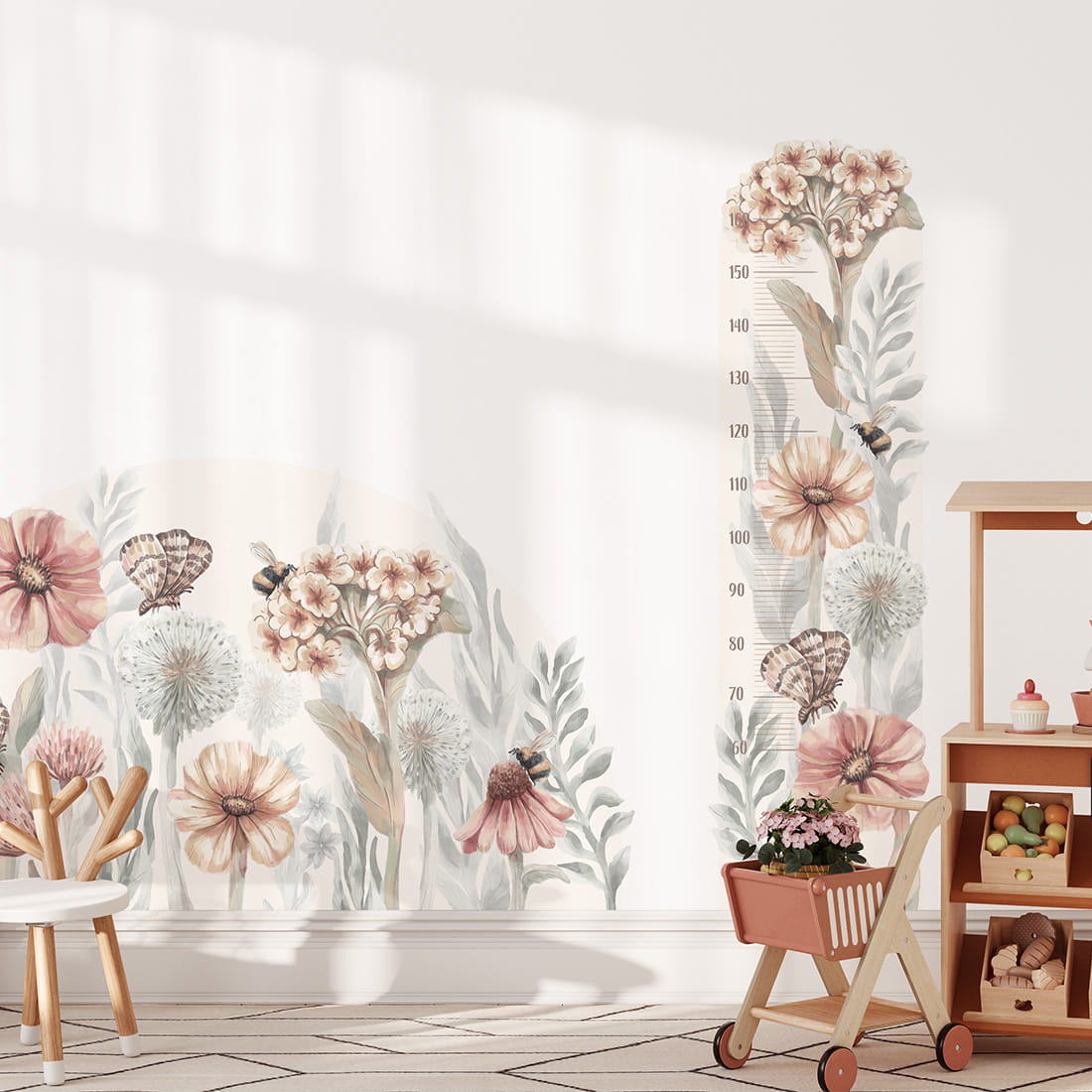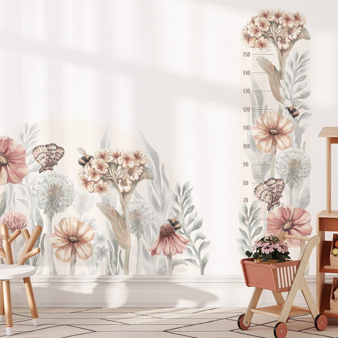 PASTELOWE LOVE - WANDAUFKLEBER HÖHENMESSER WILDBLUMEN